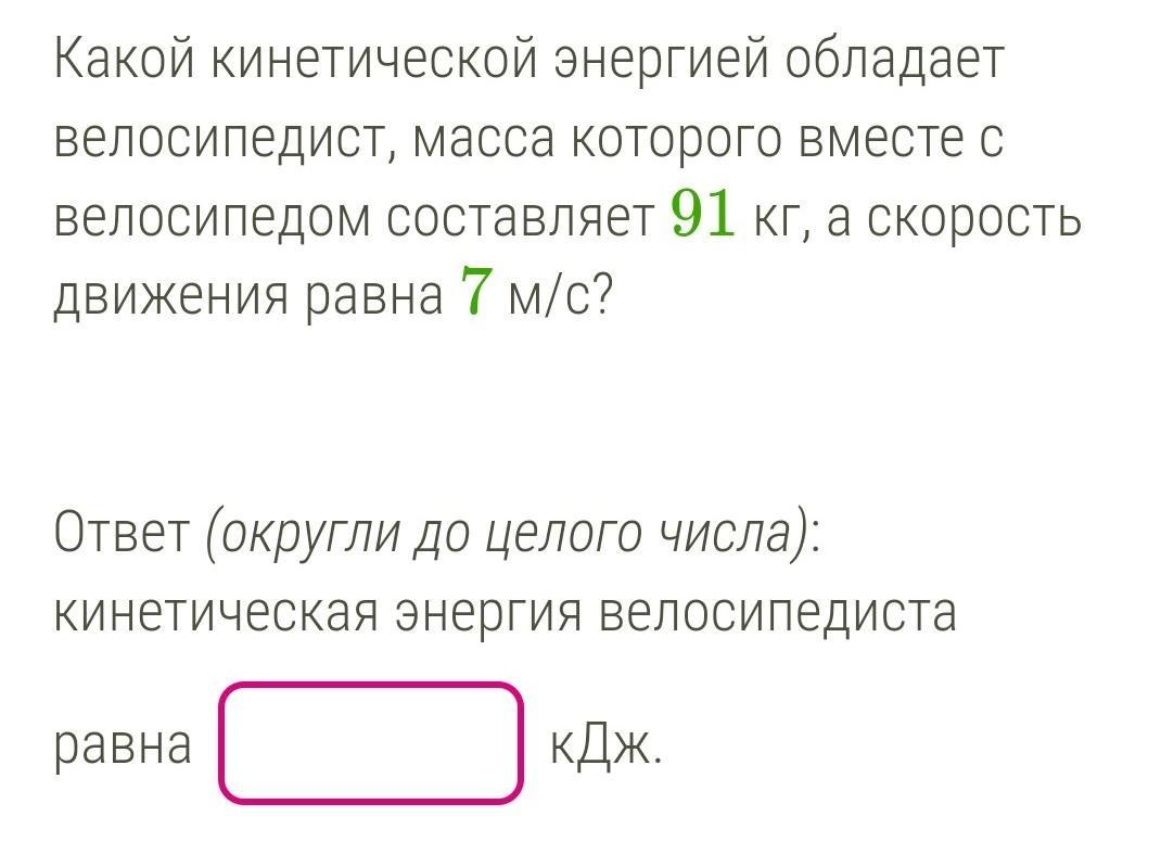 E=mv²/2=91×7²/2=2229,5=2кДж