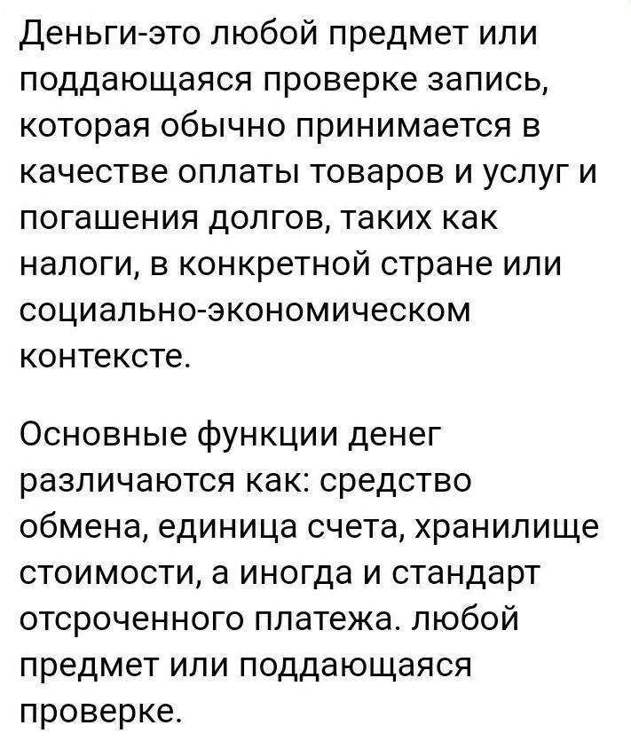 Деньги — всеобщий эквивалент, выражающий стоимость товаров и услуг