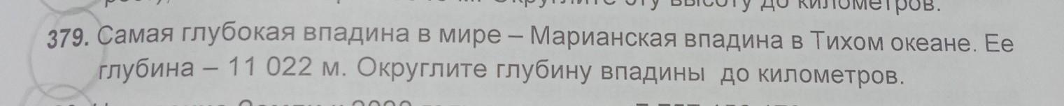 самая глубокая впадина в мире -Маринская впадина в тихом океане глубина -11,022м округлите глубину впадина да километров