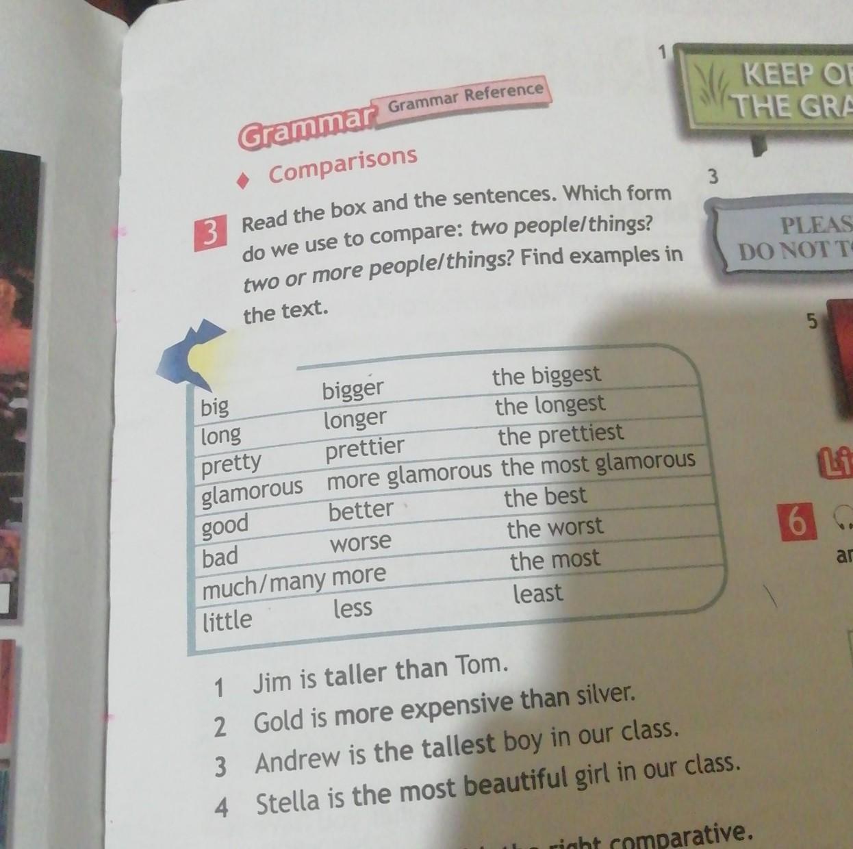 при сравнении добавляем окончание -er(taller, bigger), при утверждении что этот предмет превосходит другие (самый лучший , самый красивый) добавляем the и окончание -est(the tallest, the biggest)