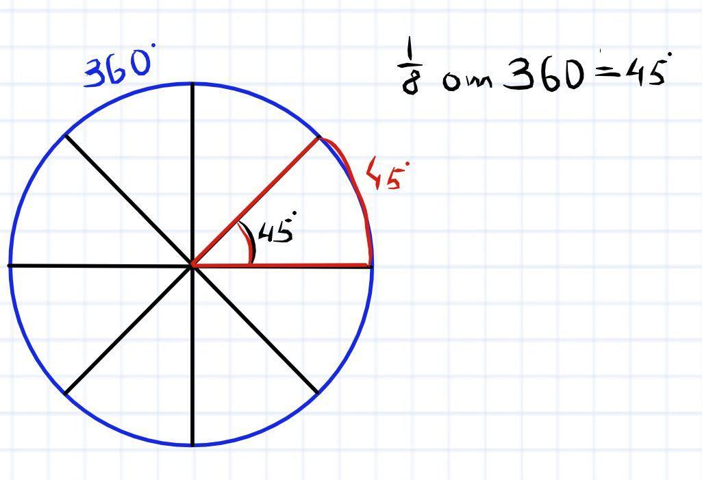 Значит дуга равна 360 * 1/8=45°