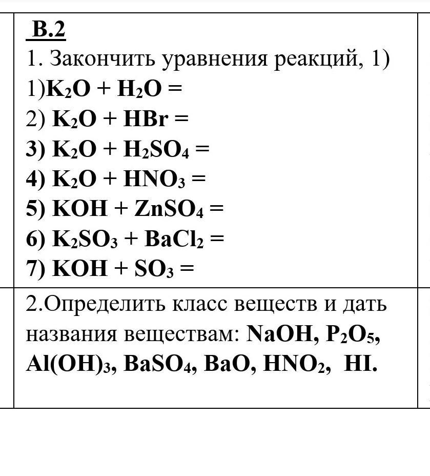 1. 1)K2O + H2O --> 2KOH