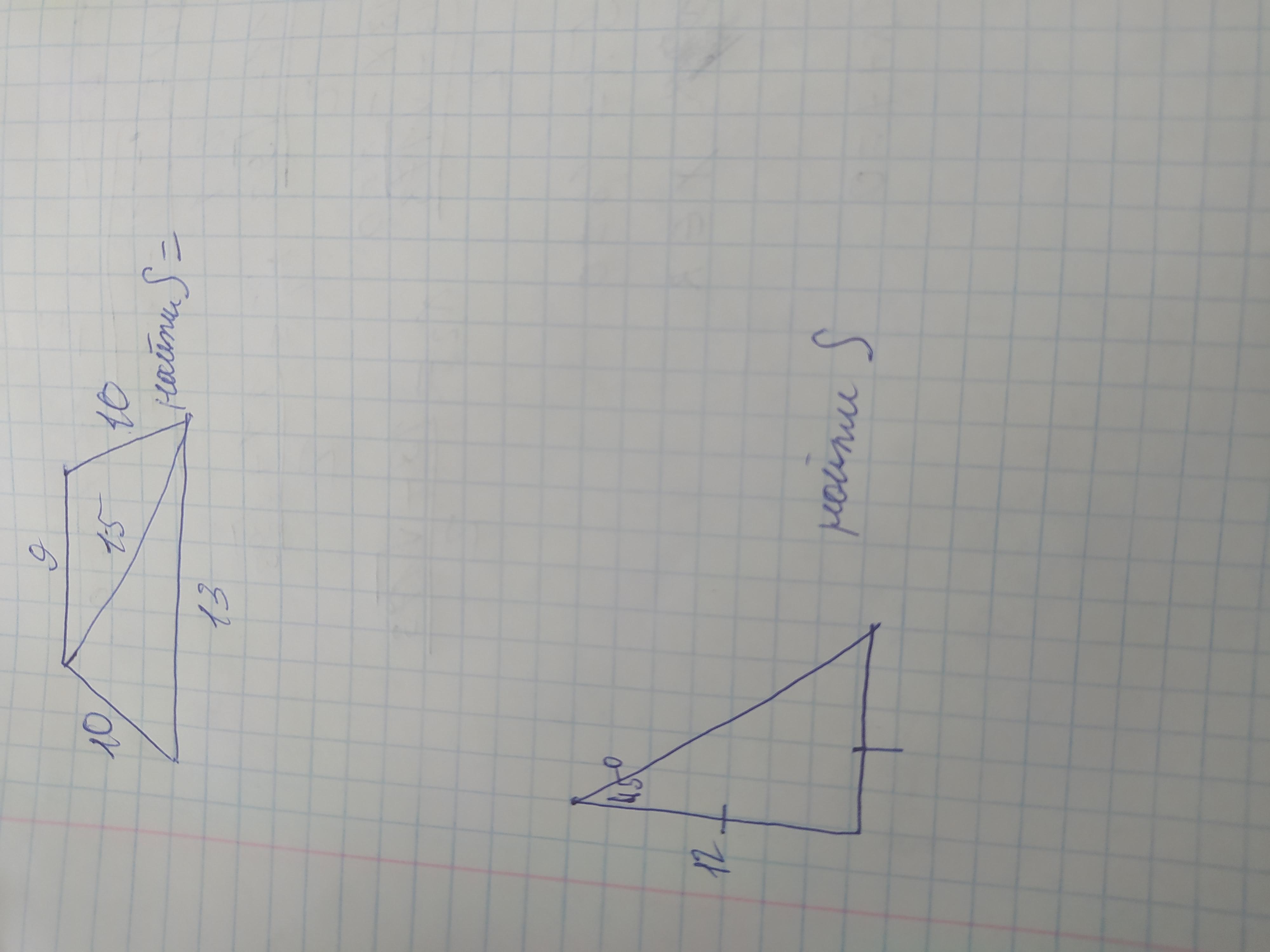 2) Т.к. треугольник равнобедренный, то a = b = 12, тогда площадь треугольника равна: