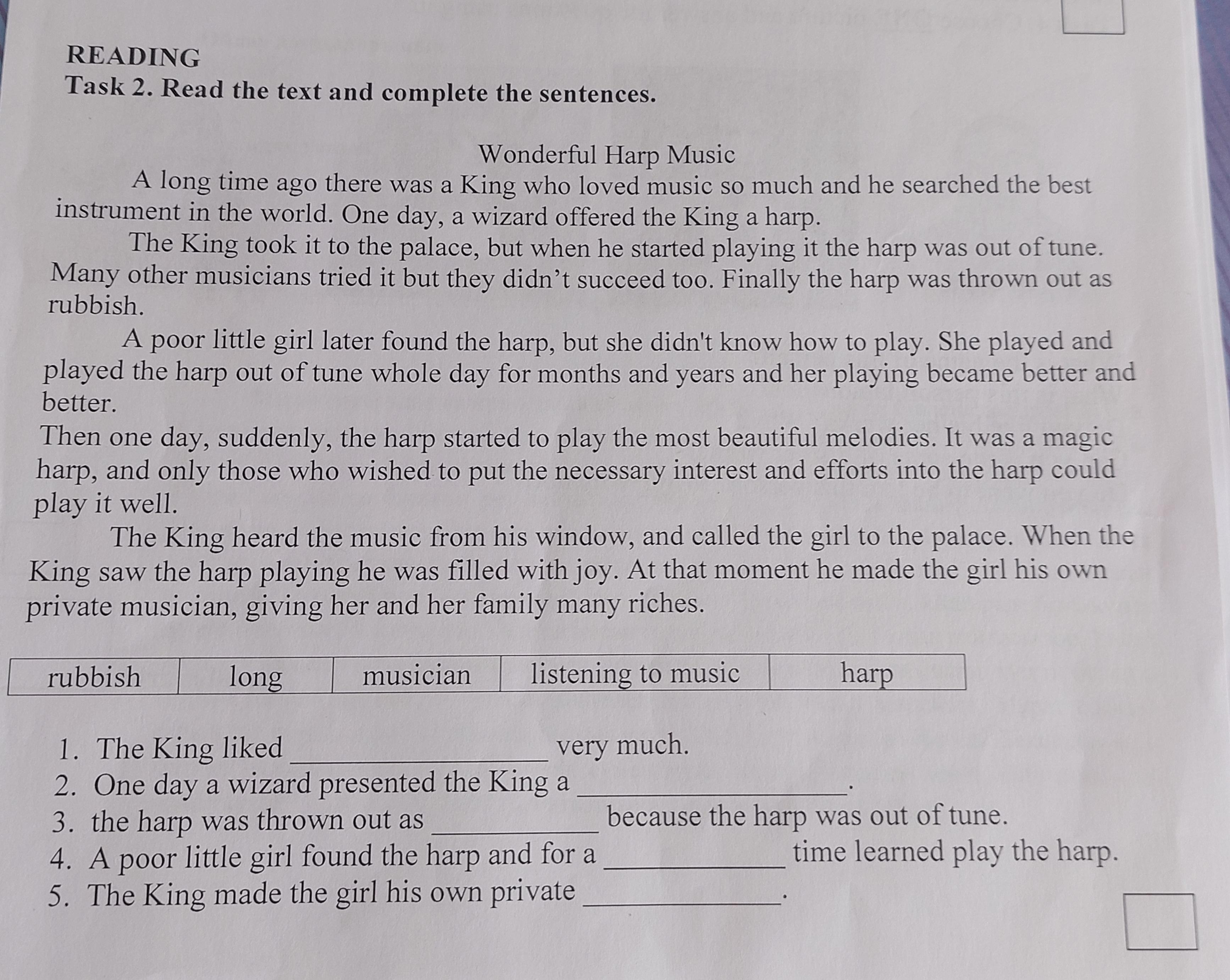 4 переводиться, как однажды маленькая, бедная девочка нашла арфу и долго училась на ней играть
