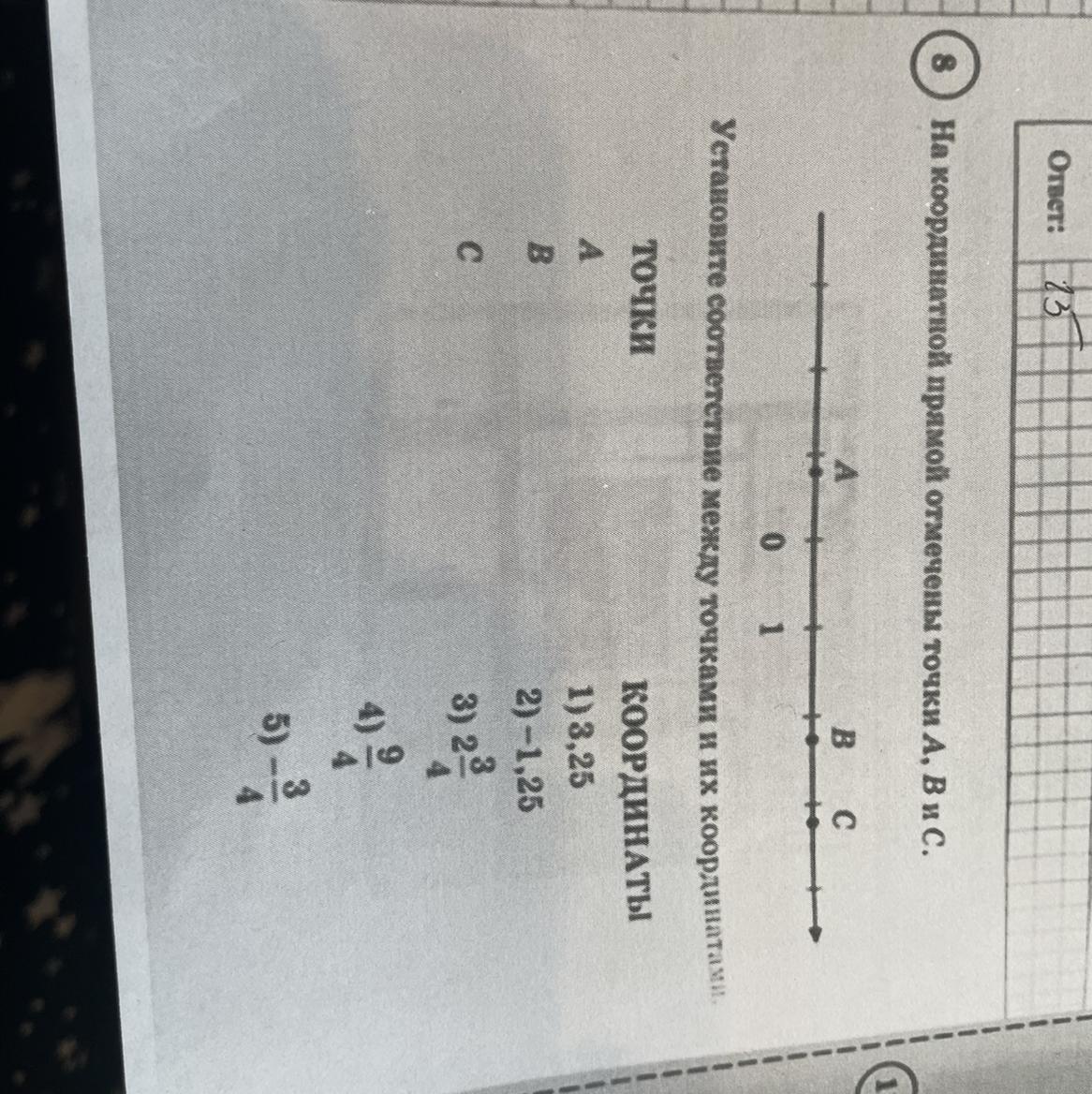 8) А → 5) -3/4; В → 4) 9/4; С → 1) 3,25