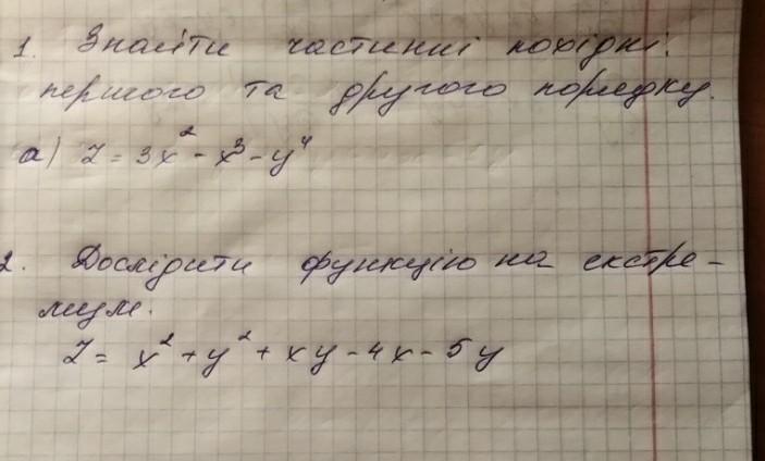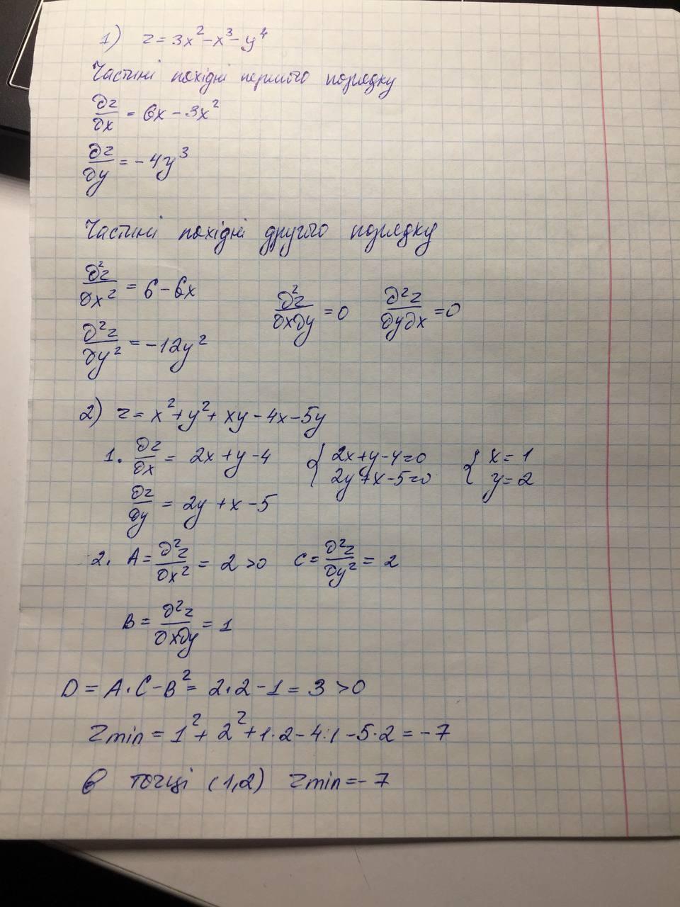 1) знахрдимо частині похідні першго порядку , потіб прирівнюємо їх до нуля і знаходимо точку , в якій може бути екстремум функції , їх ще називають ствціонарними точками