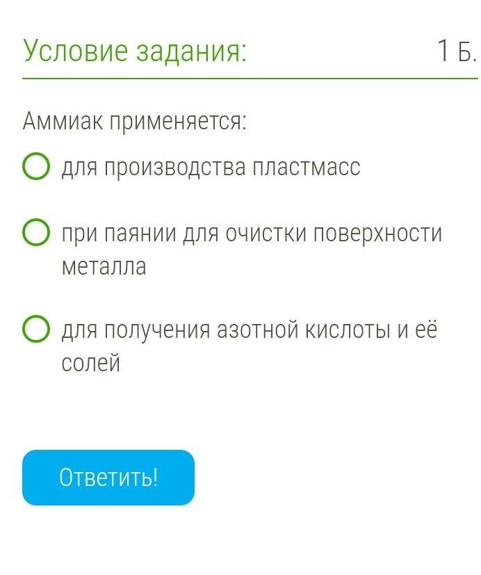 Аммиак применяется : для производства пластмасс, для получения азотной кислоты и ее солей, при паянии для очистки поверхности металла