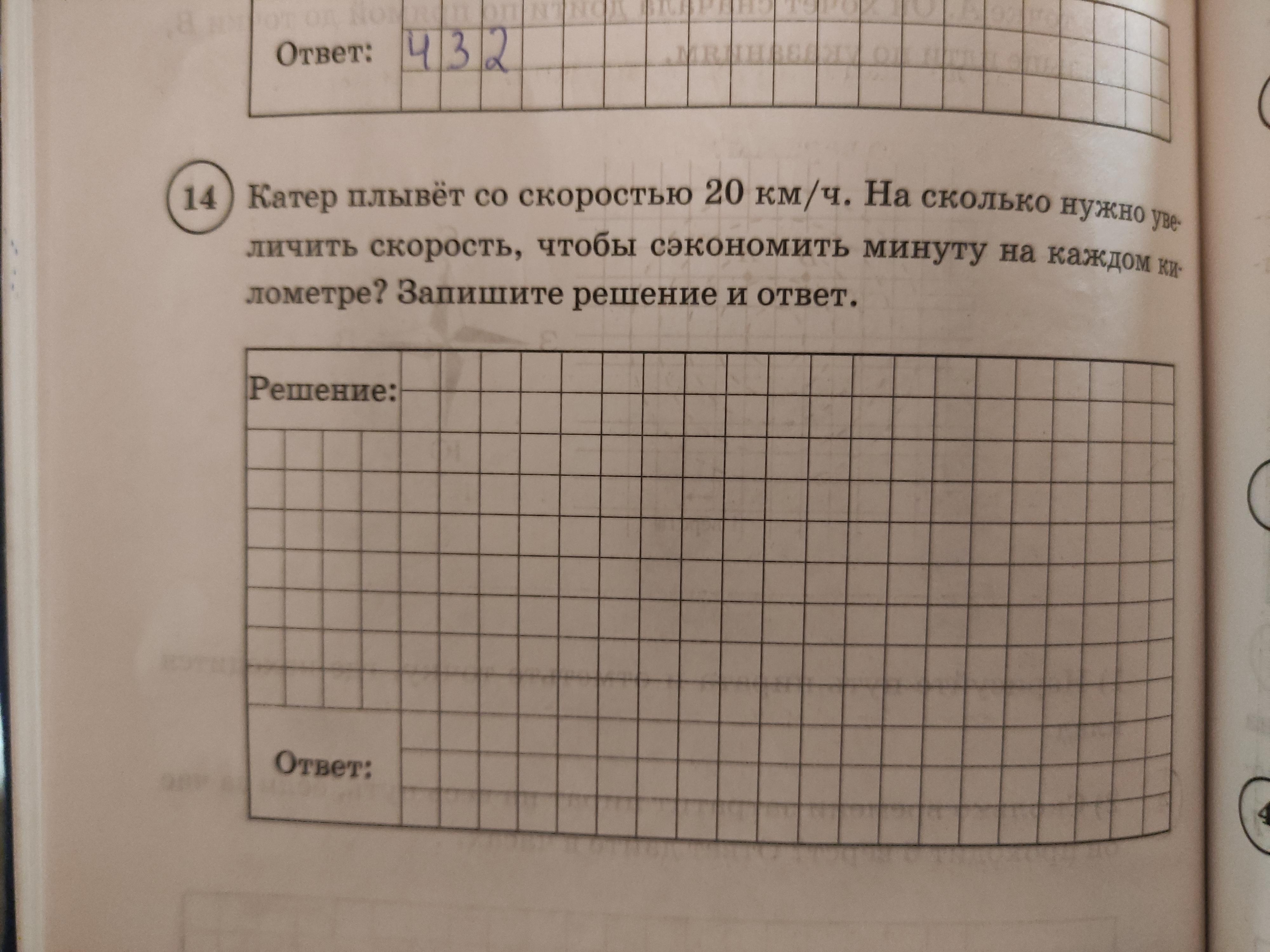 Катер плывёт со скоростью 20 км ч На сколько нужно увеличить скорость чтобы сэкономить Минуту На каждом километре Запишите решение ответ