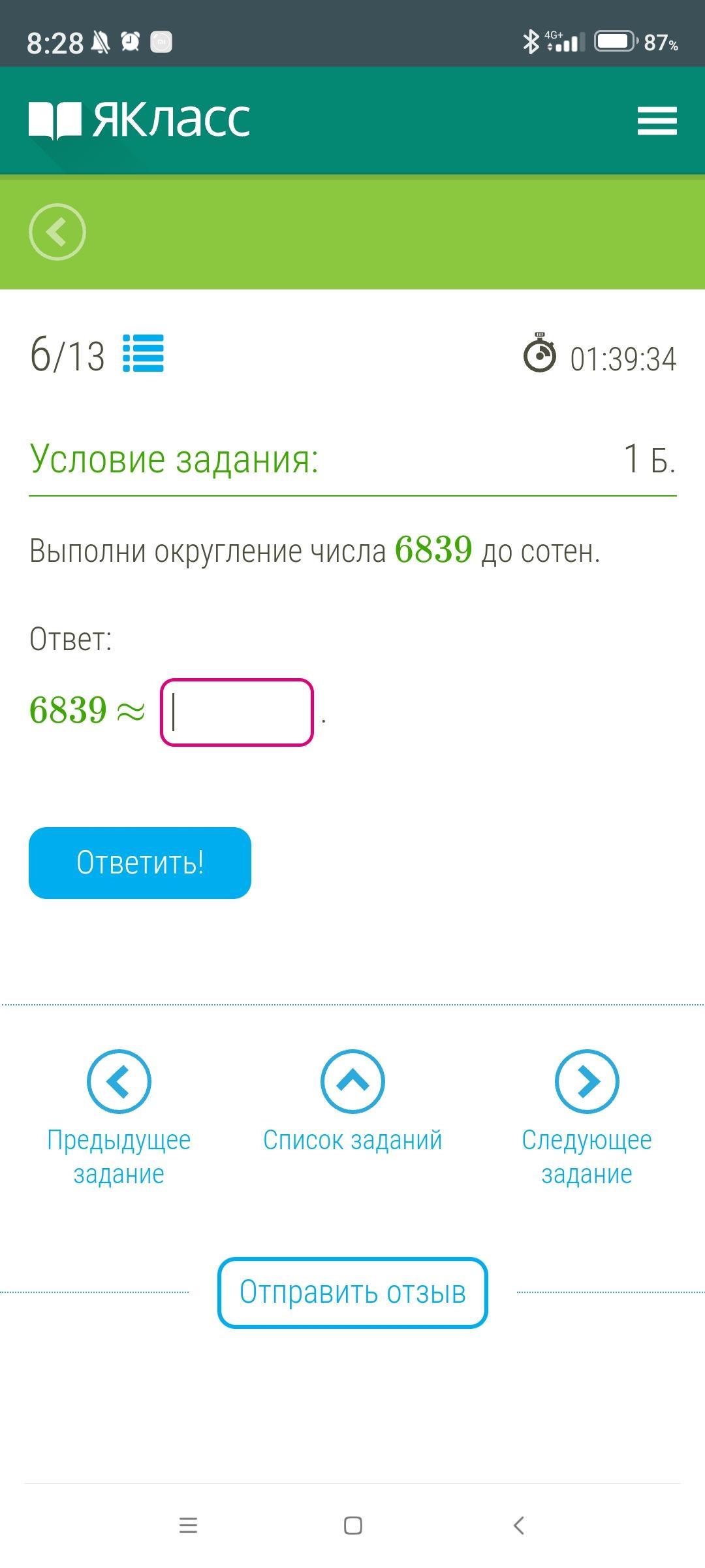 6839 округлить до сотен, смотрим на цифру обозначающую кол-во десятков, если она больше 4 то прибавляем к разряду сотен еще 1, если нет, то оставляем разряд сотен, при это все меньшие разряды превращаются в нули,