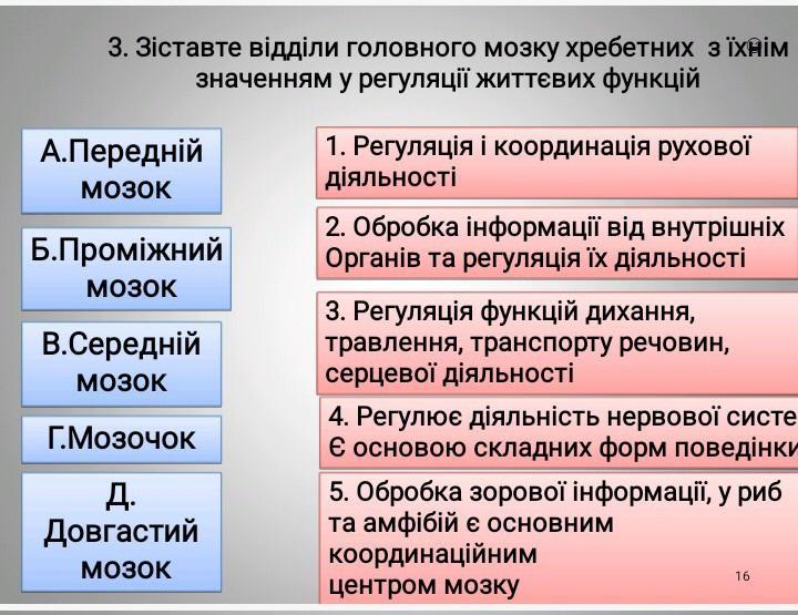б проміжний мозок обробка інформації від внутрішних Органів та регуляція їх діяльності