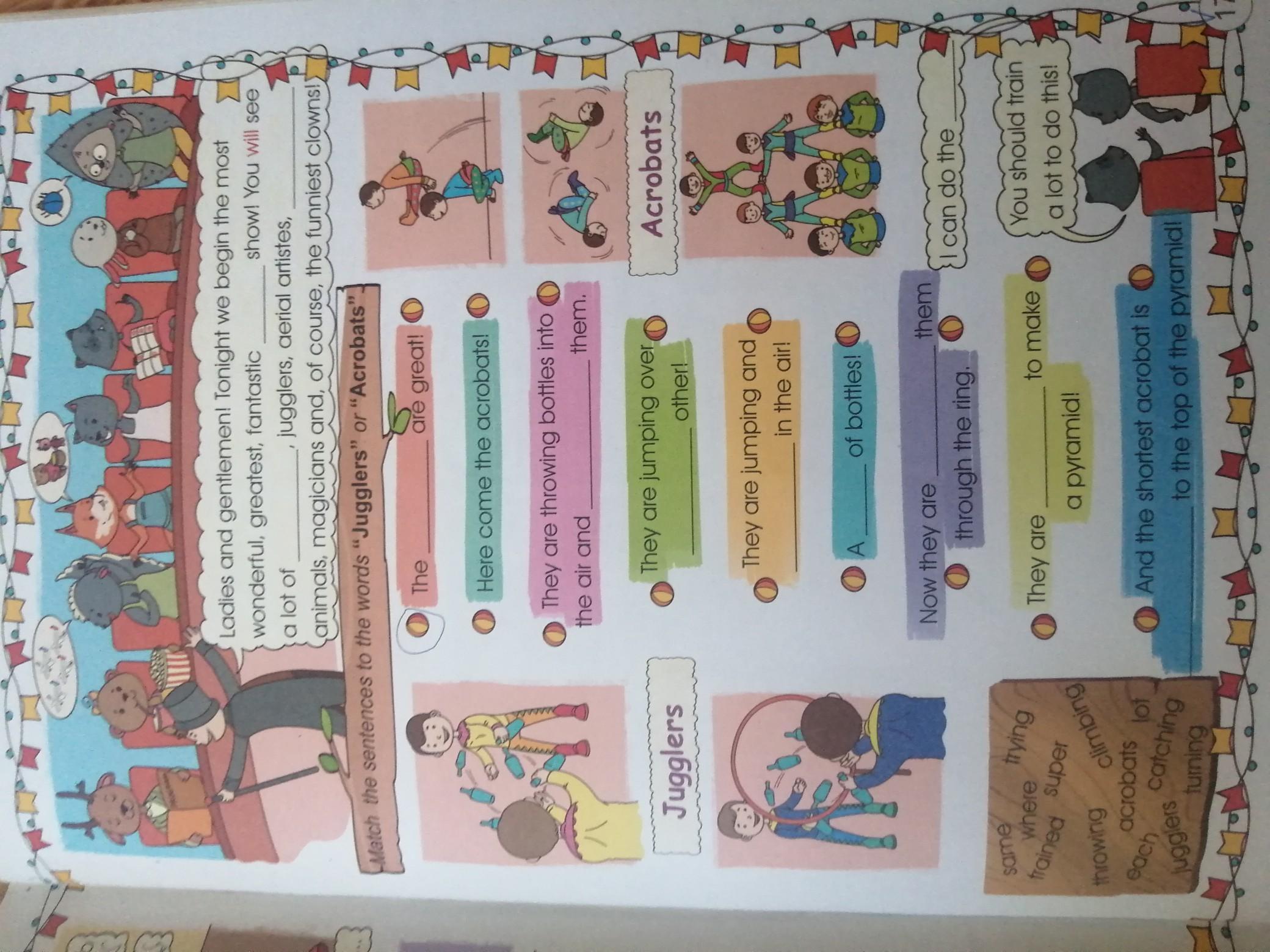 текст: super show; (a lot of) acrobats; some (animals.. )