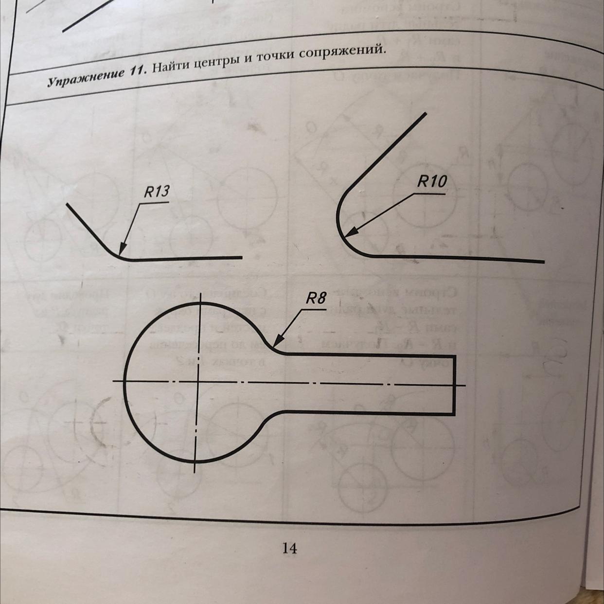 центры:через точки пересечения радиусов.точка сопряжений их перемножить надо