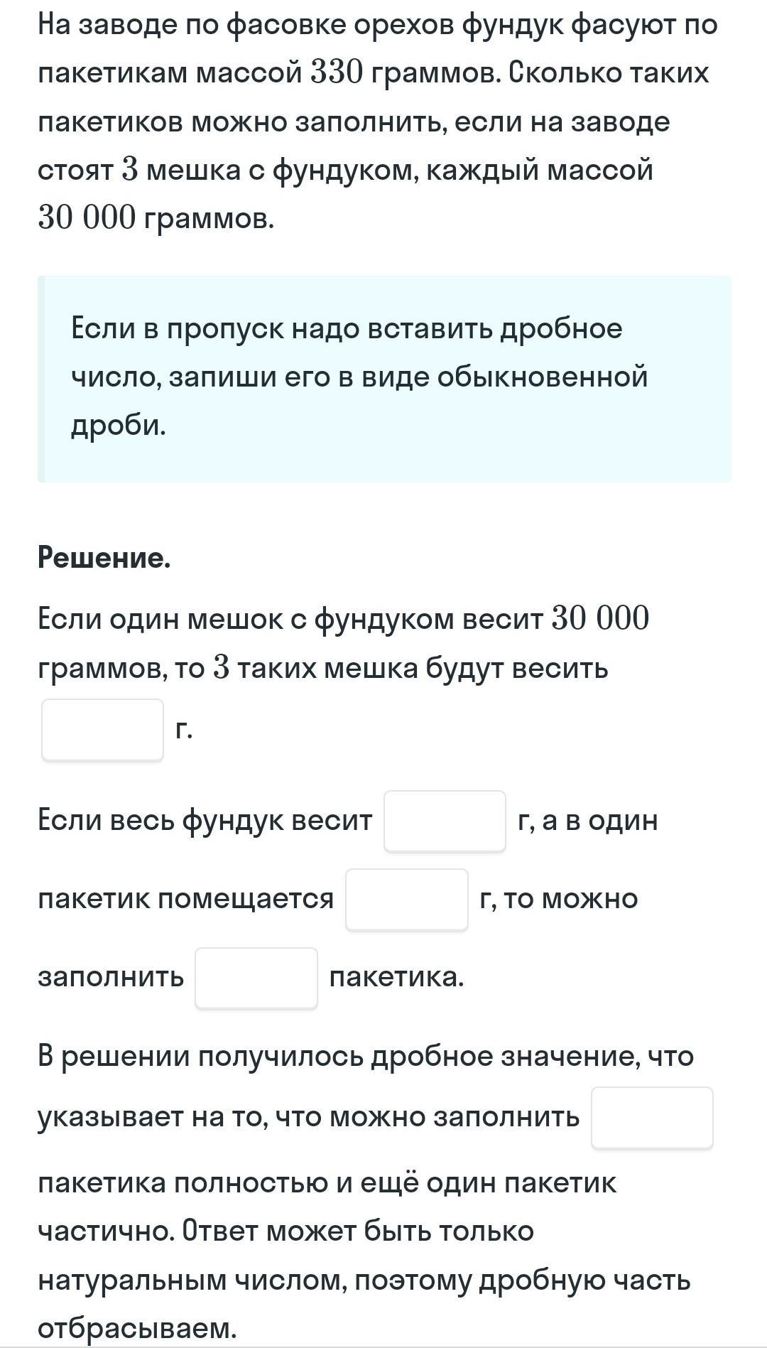1) 30000 * 3 = 90000 (г) - будут весить 3 мешка