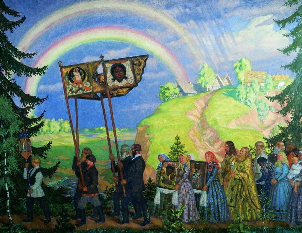 Напишите сочинение на 600 слов по теме: первое впечатление о картине "Крестный ход" Кустодиева