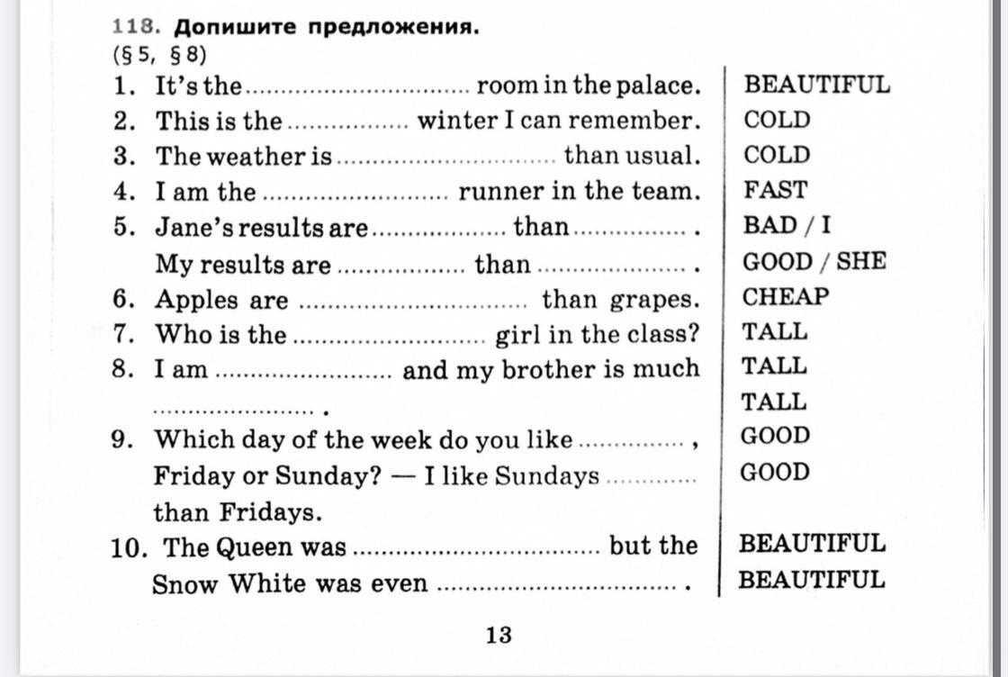 10. The Queen was beautiful but he Snow White was even more beautiful.