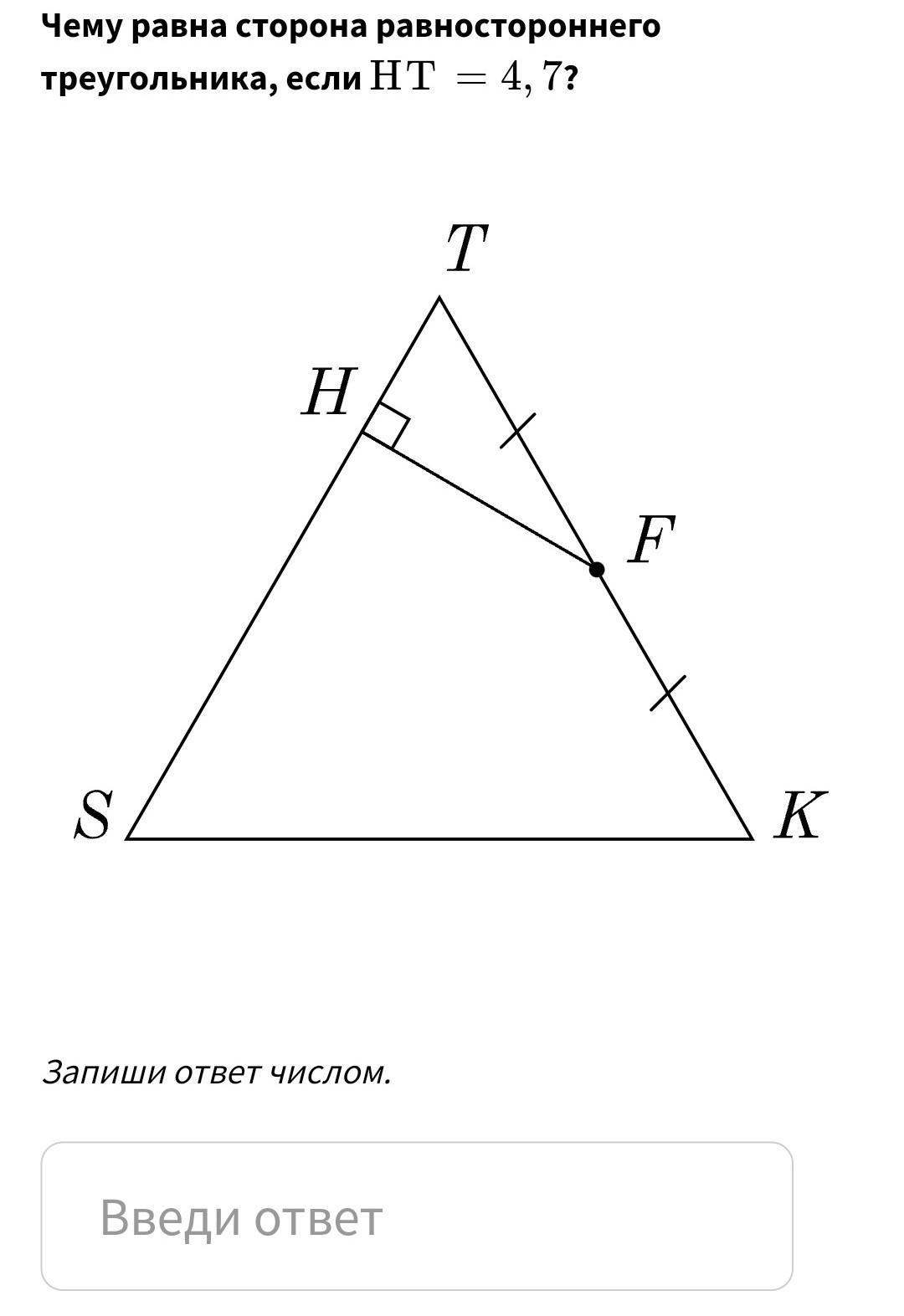 Cледовательно TF=2HT=9.4, а сторона равностороннего 2TF=18.8