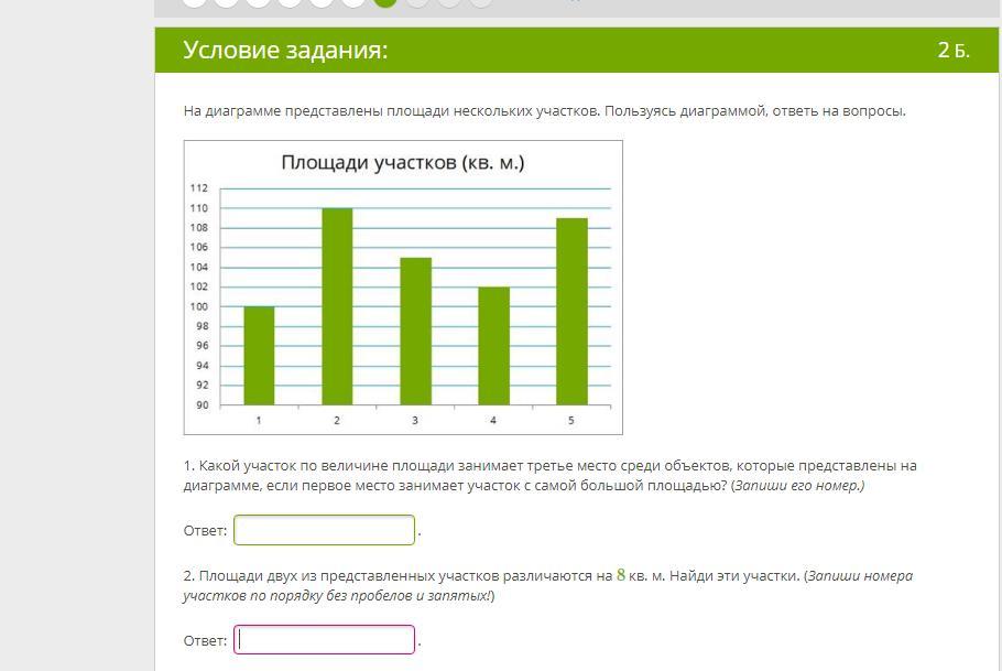 диаграмме, если первое место занимает участок с самой большой площадью? (Залиши его номер.)