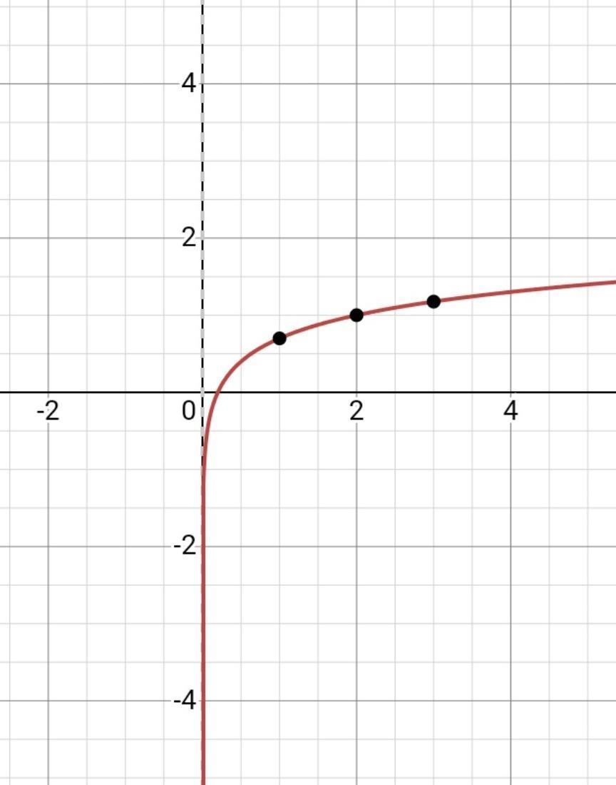 Построим график логарифма, используя вертикальную асимптоту и несколько выбранных точек.