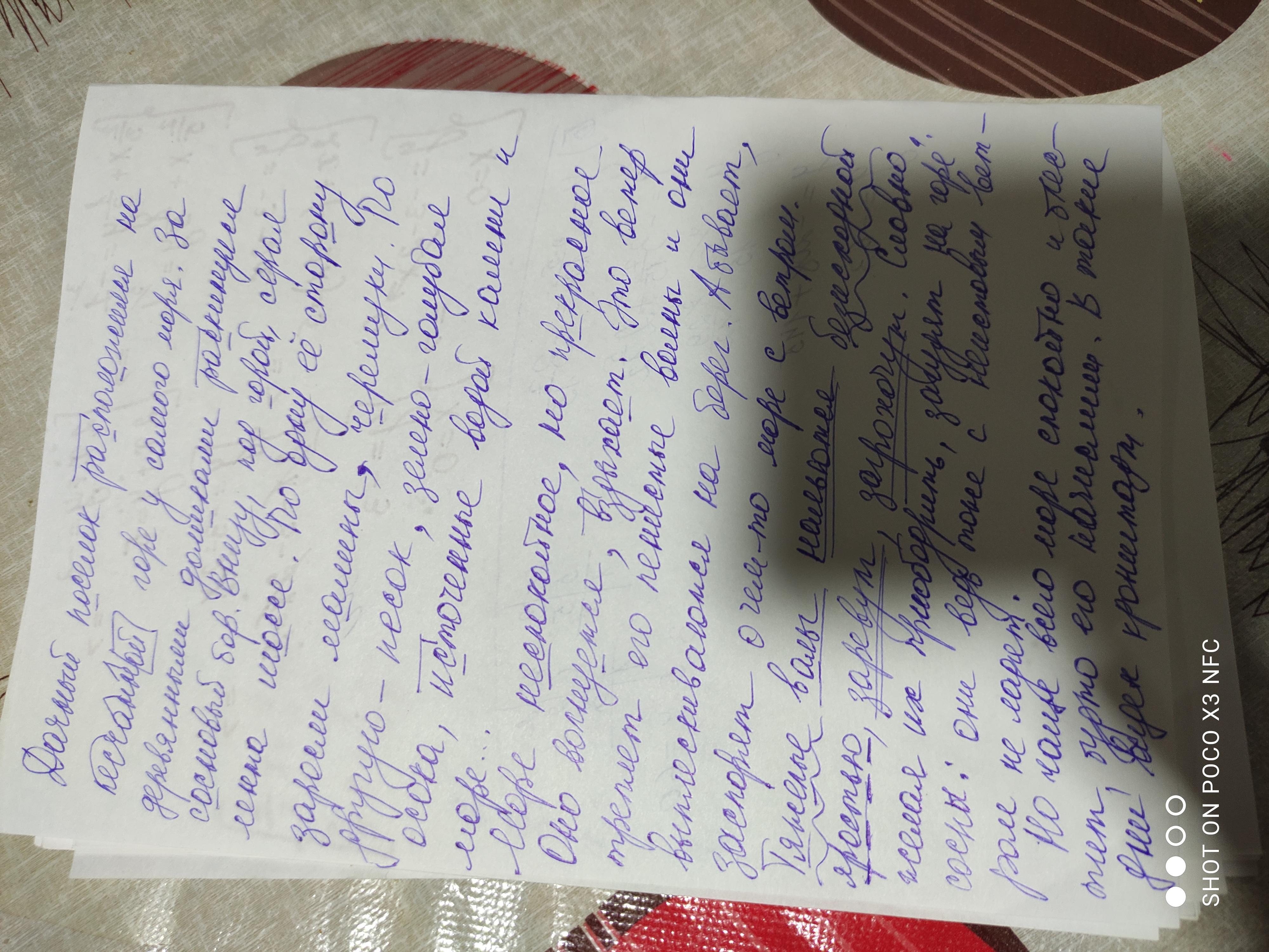 Море не спокойное, но прекрасное. Оно волнуется, вздыхает. Это ветер треплет его пенистые волны и они выплёскиваются на берег. А бывает, заспорит о чём-то море с ветром. Тяжёлые волны нальются безысходной яростью, заревут, загрохочат. Словно желая их приободрить, загудят на горе сосны: они ведь тоже с неистовым ветром не ладят.