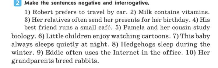 Из каждого предложения сделайте отрицательное и вопросительное предложение (без вопросительного слова):