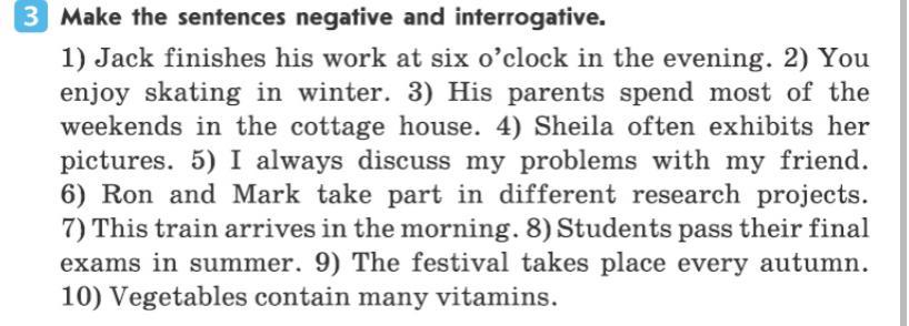 Из каждого предложения сделайте отрицательное и вопросительное предложение (без вопросительного слова):