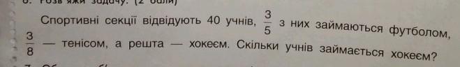 Футболом увлекается 40*(3/5)=24/учеников/, теннисом 40*(3/8)=