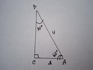 "У прямокутному трикутнику ABC гіпотенуза AB=4см, а катет AC=2см.