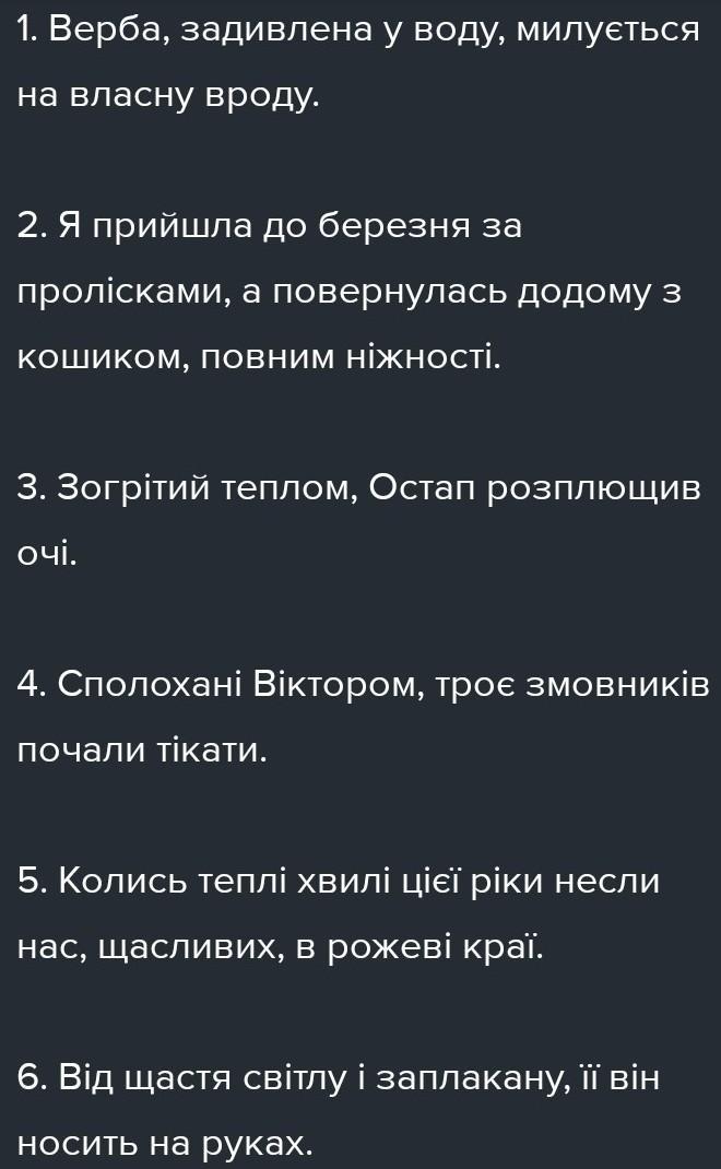 6.Від щастя світлу і заплакану її він носить на руках (В. Кобець).