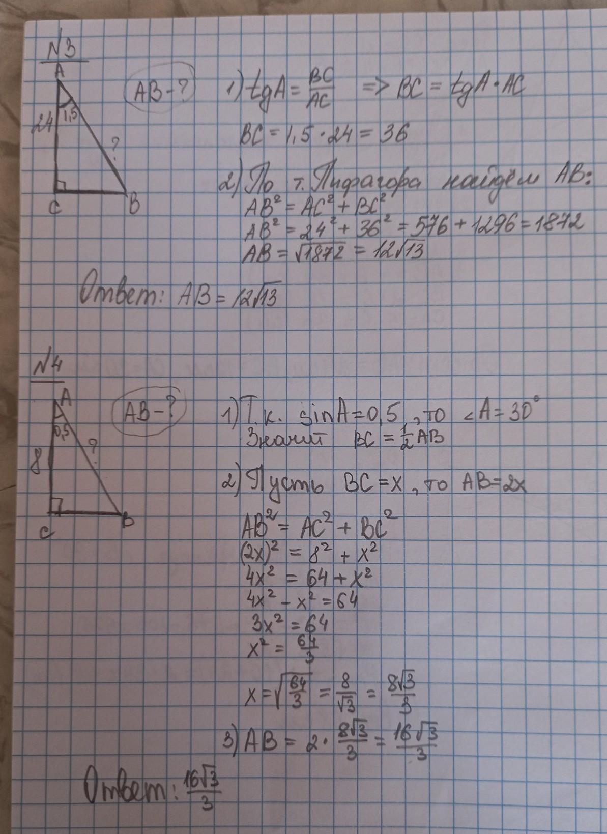 3. В треугольнике АВС угол С равен 90°, АС = 24, tgA =1,5 . Найдите АВ.