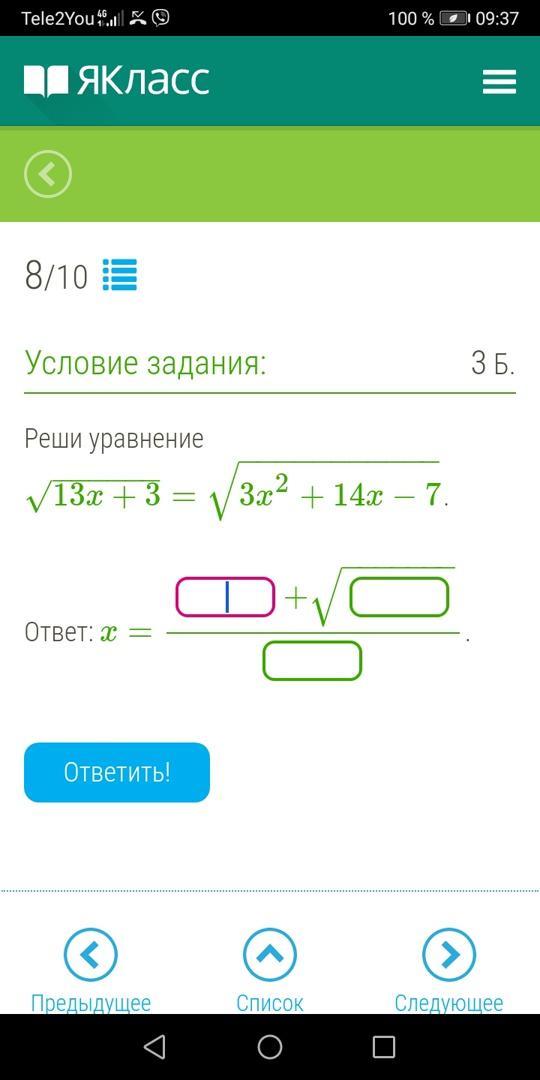 13х+3=3х^2+14х-7