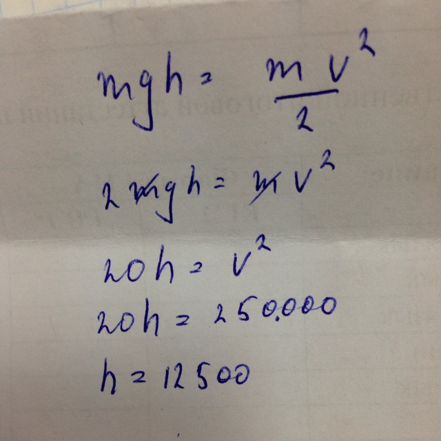 На какой высоте кинетическая энергия зенитного снаряда ,выпущенная вертикально со скоростью 500м/с. Равна его потенциальной энергии?