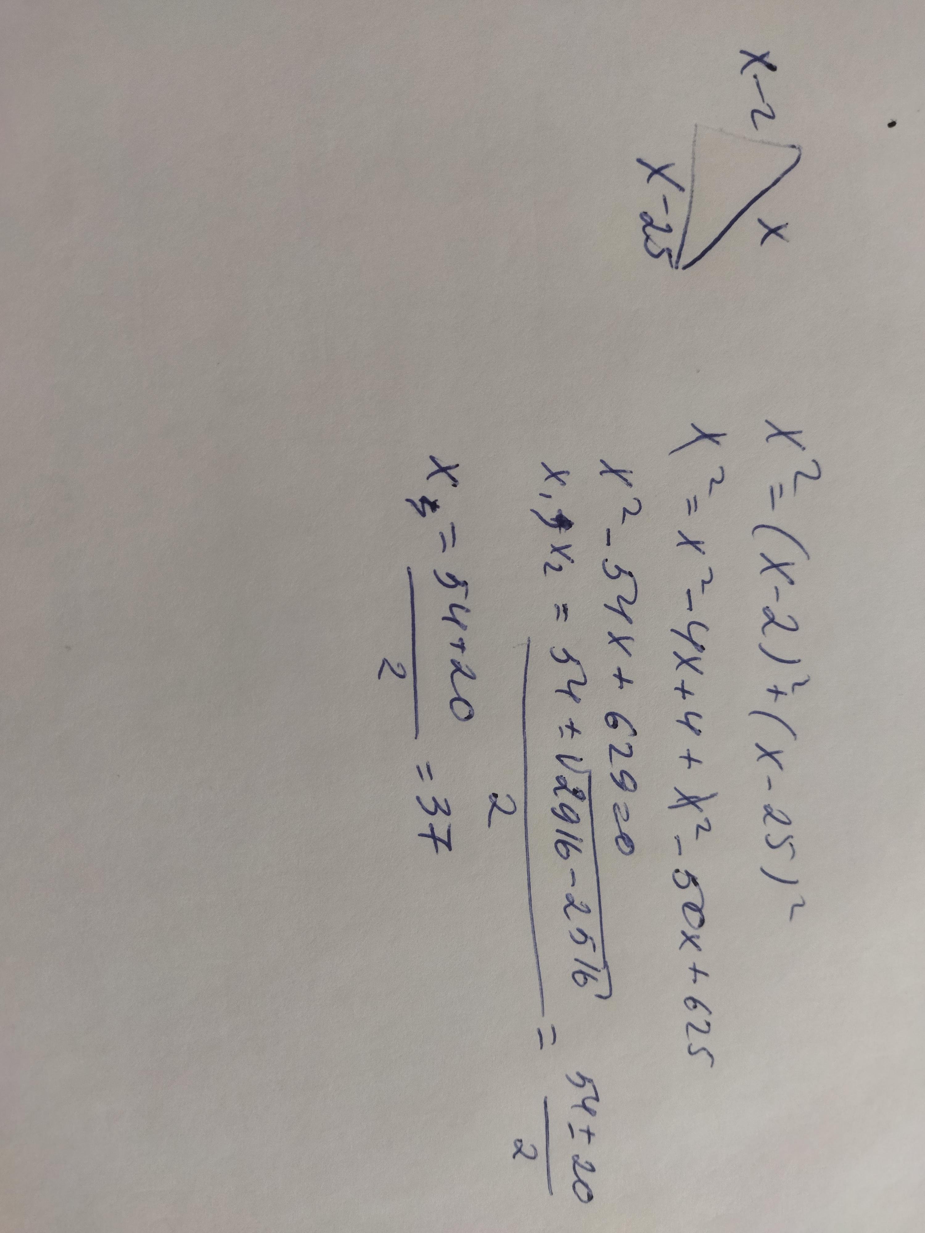 2 катет x-25