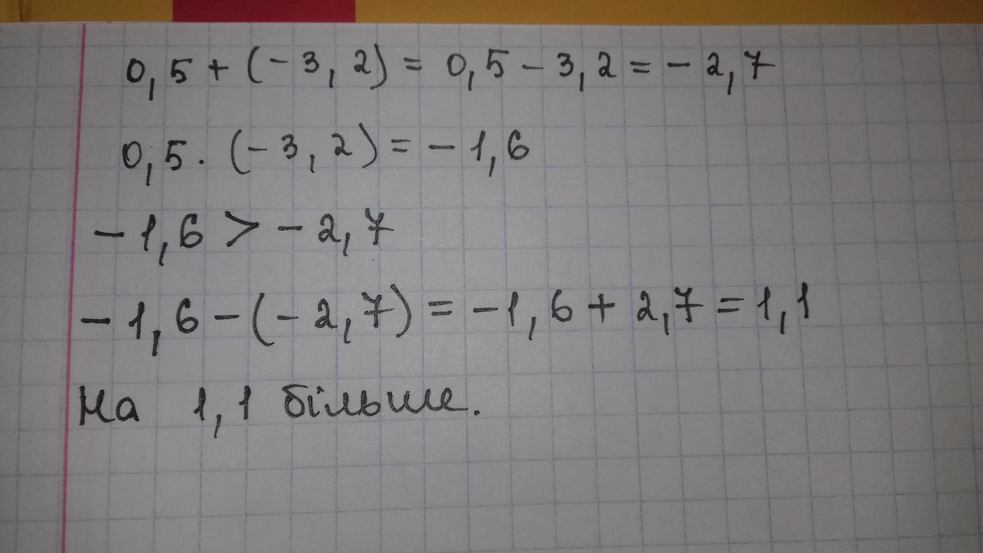 Значит произведение чисел 0,5 и -3,2 больше, чем их сумма на 1,1.
