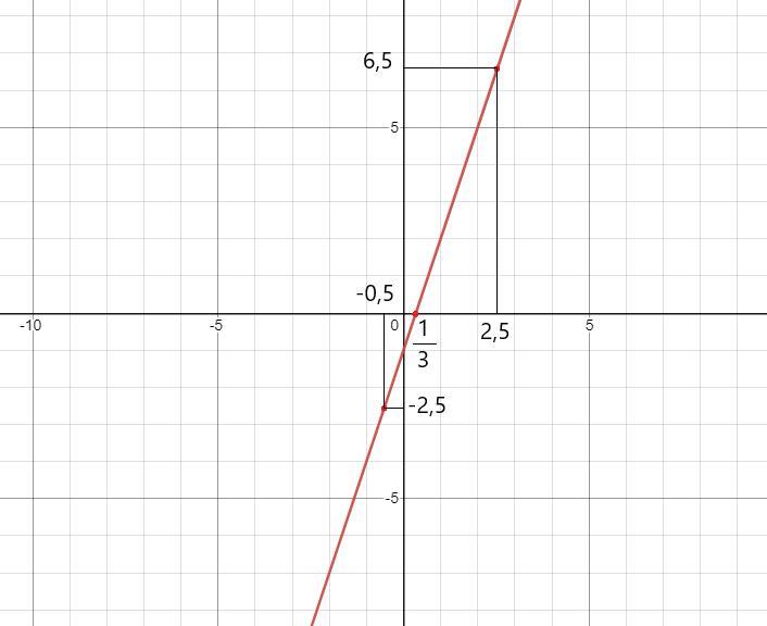 При х = 2,5 ⇒ у = 3 · 2,5 - 1 = 7,5 - 1 = 6,5.