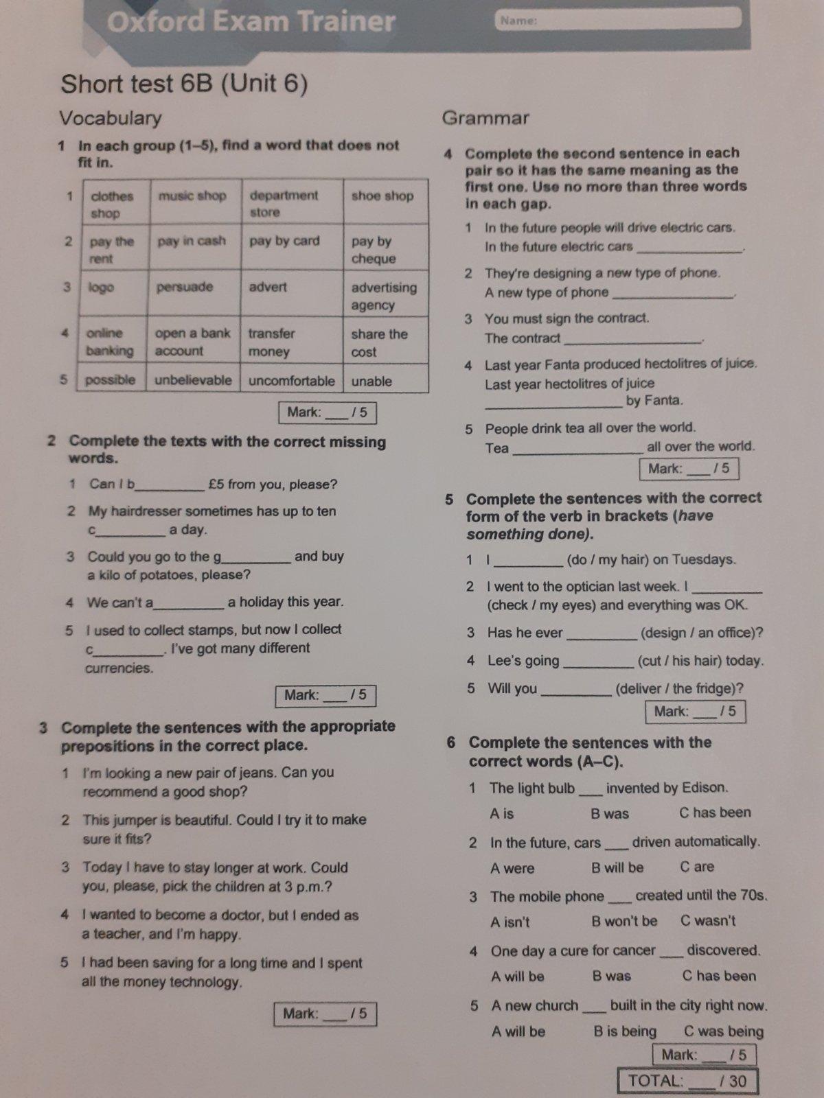 oxford exam trainer short test unit 6 прошу помогите решить эти задания которые на фото , в особенности 3 , 4 и 5 .