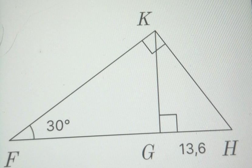 В ΔKGH катет GH лежит против ∠GKH=30°, тогда KH=2·GH=2·13,6=27,2 ед.
