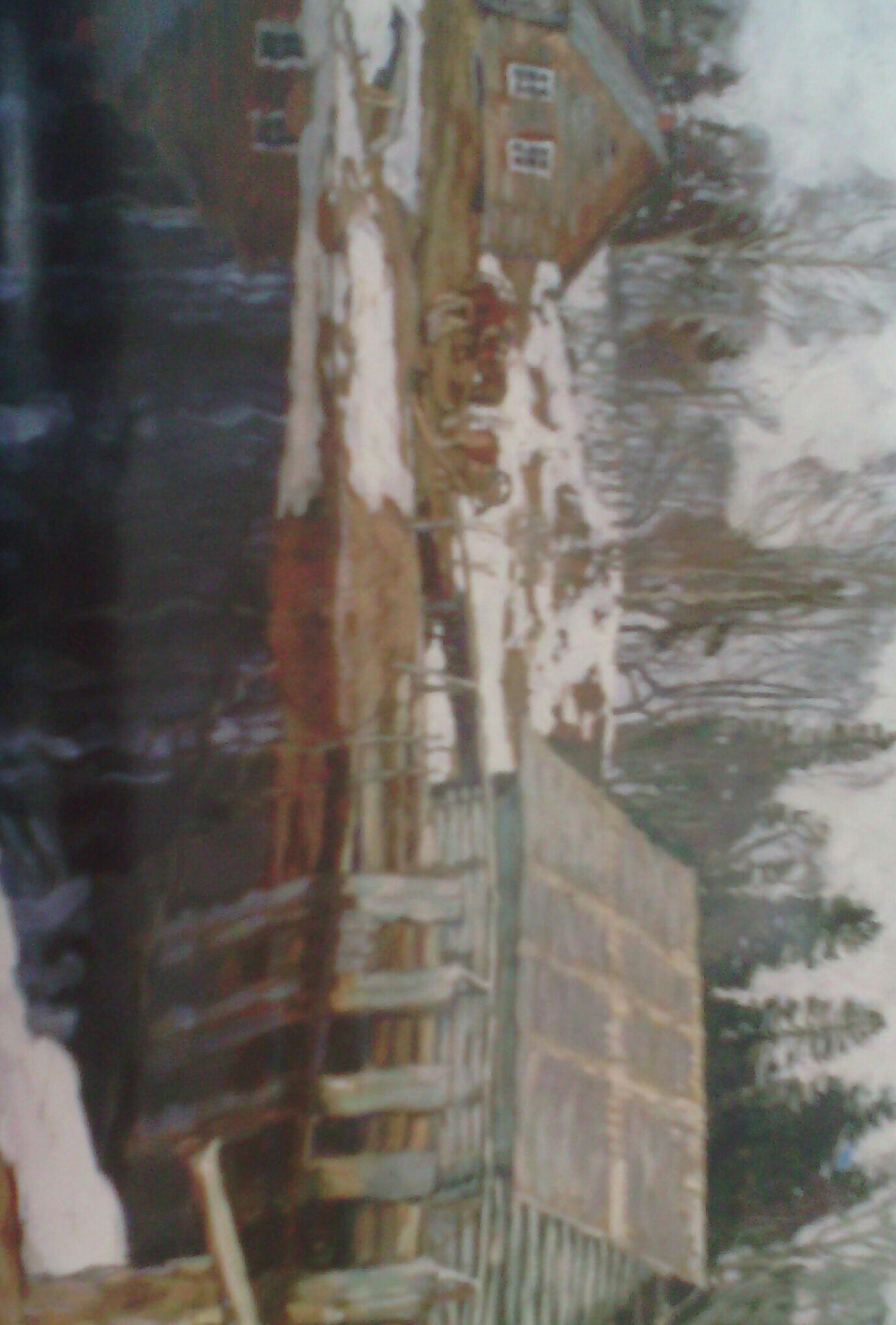 Время года на картине - ранняя осень. Вода уже отошла ото льда, но на берегах и на холмах ещё много сугробов. Плотина огорожена деревянными досками, построена по-простому. Домики рядом тоже выдают своим видом, что деревня достаточно бедная. Но люди в ней активно занимаются хозяйством, работают. Около дома стоят запряженные лошади. Вода в пруду кажется чистой, ледяной. Отдельное внимание заслуживает небо. Художник написал его крупными мазками, чтобы показать его тяжесть, изобразить пасмурную погоду. Вдалеке лес с елями и берëзами стоит неподвижно, будто замер в ожидании весны.
