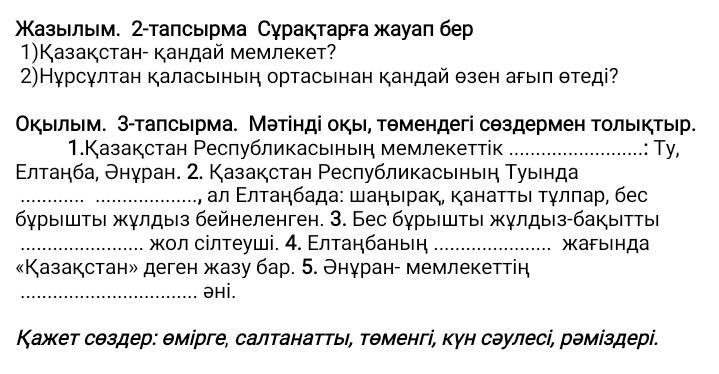 2) Қазақстан республикасының Туында , күн сәулесі, ал Елтаңбада: шаңырақ, қанатты тұлпар, бес бұрышты жұлдыз бейнеленген.
