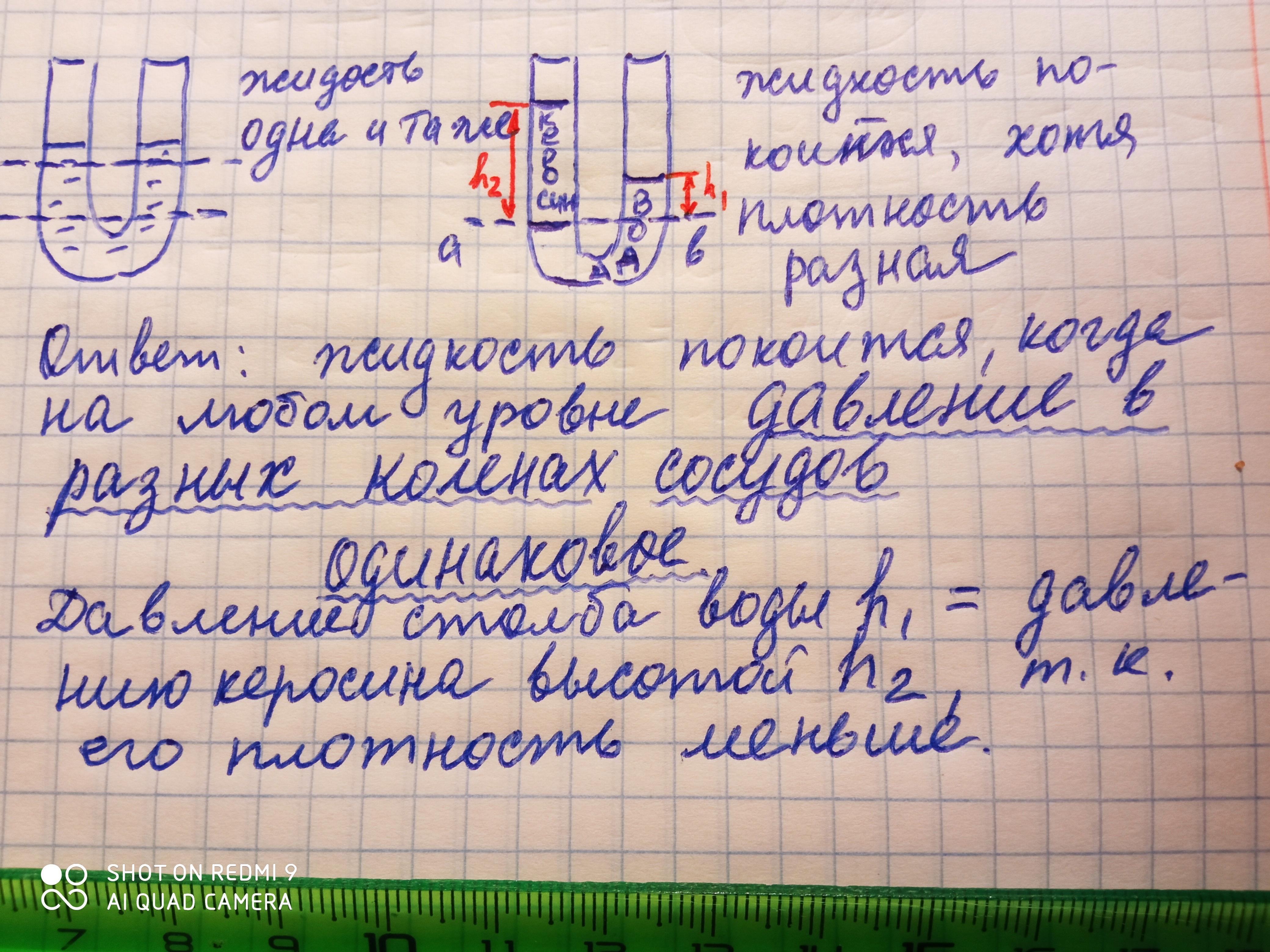 Когда жидкость покоится в сообщающихся сосудах, не перемещаясь из одного сосуда в другой, это значит, что: *