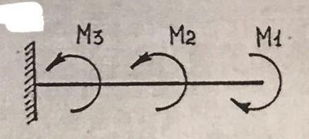 построить эпюру крутящих моментов и определить диаметр на каждом из трёх участков по условию прочности и жёсткости. Для материала бруса принять [т]=40 МПа; [Фо]=0,02 рад/м; G= 8* 104 МПа.