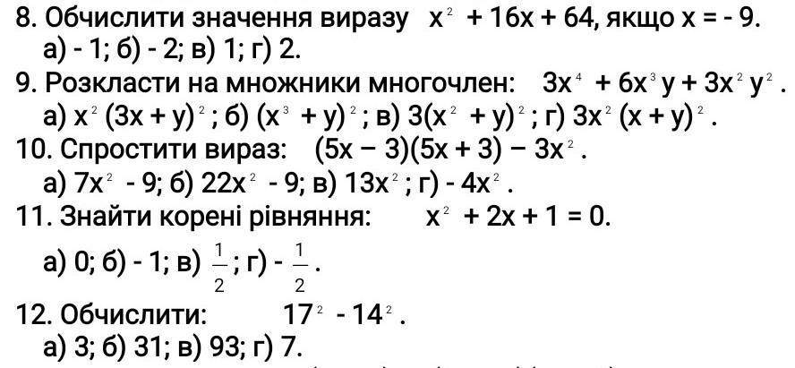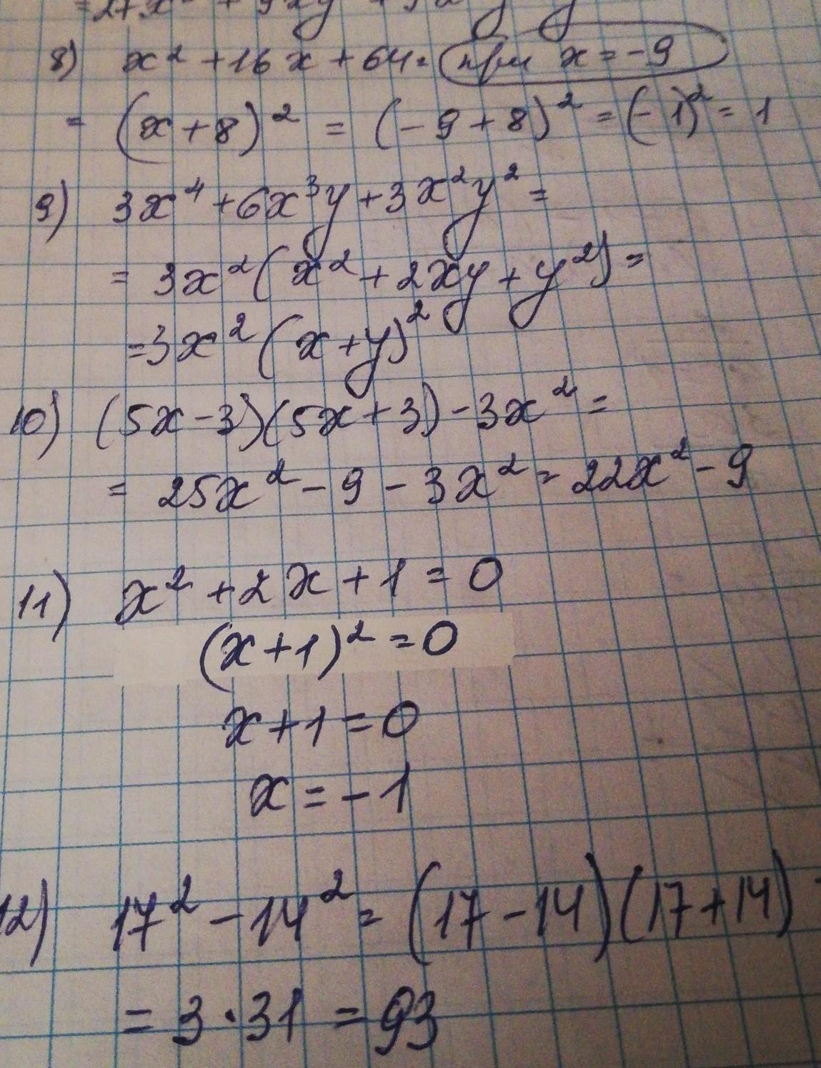 8. (-9)²+16×(-9)+64 = 81 - 144 + 64 = 1
