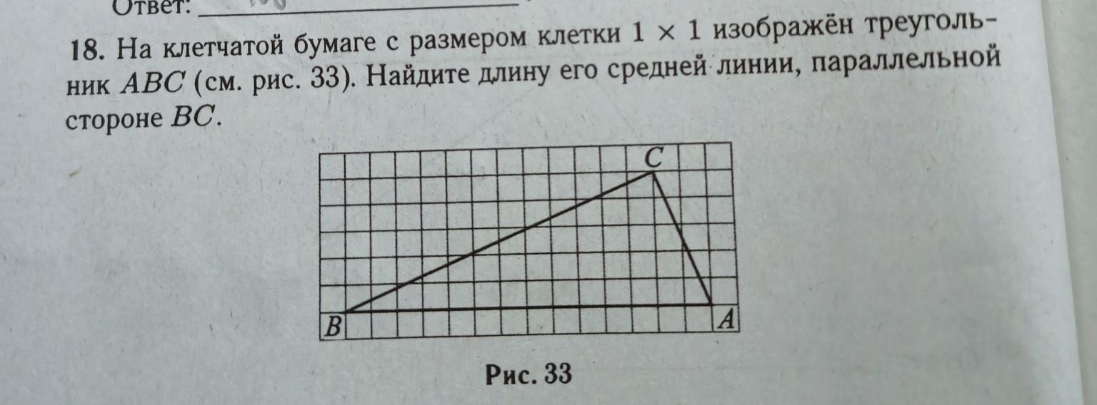 Средняя линяя в два раза меньше параллельной стороне, тогда, средняя линия будет равна 13/2, то есть 6,5