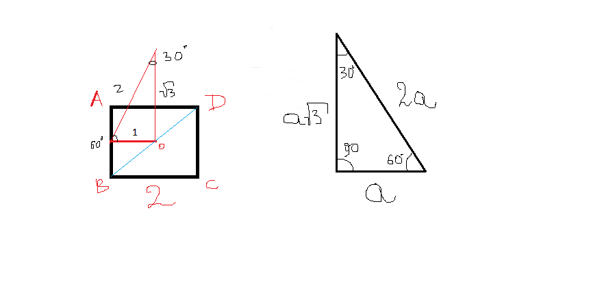 Сторона квадрата ABCD равна 2см. Отрезок АМ перпендикулярен плоскости квадрата, угол ABM=60 градусов. Найти растояние от точки М до прямой ВD.