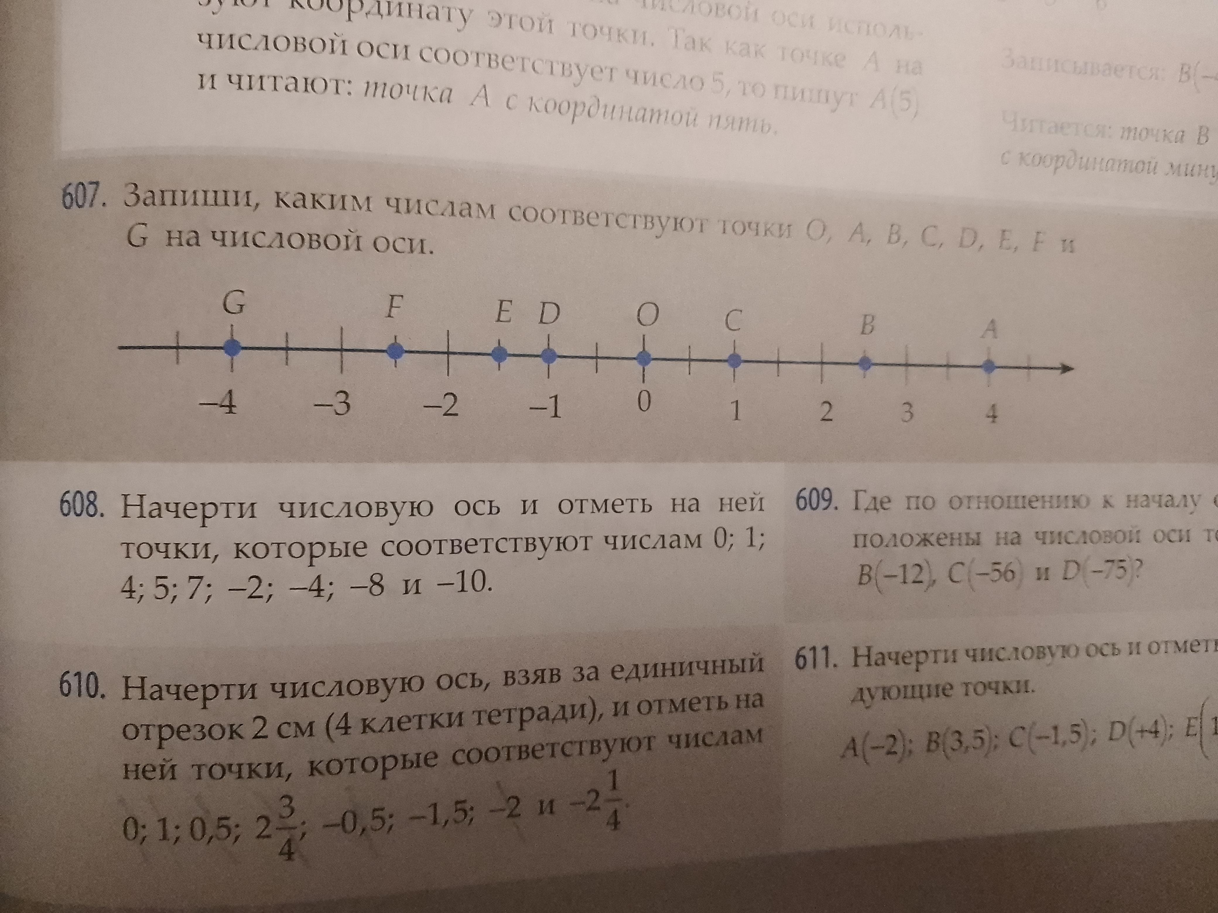 607. О(0), A(4),B(2,5),C(1),D(-1),E(-1,5),F(-2,5),G(-4)