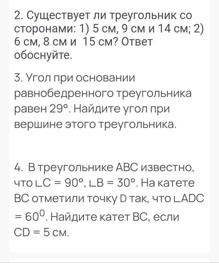 2)сумма двух сторон треугольника должна быть больше чем третья сторона треугольника.