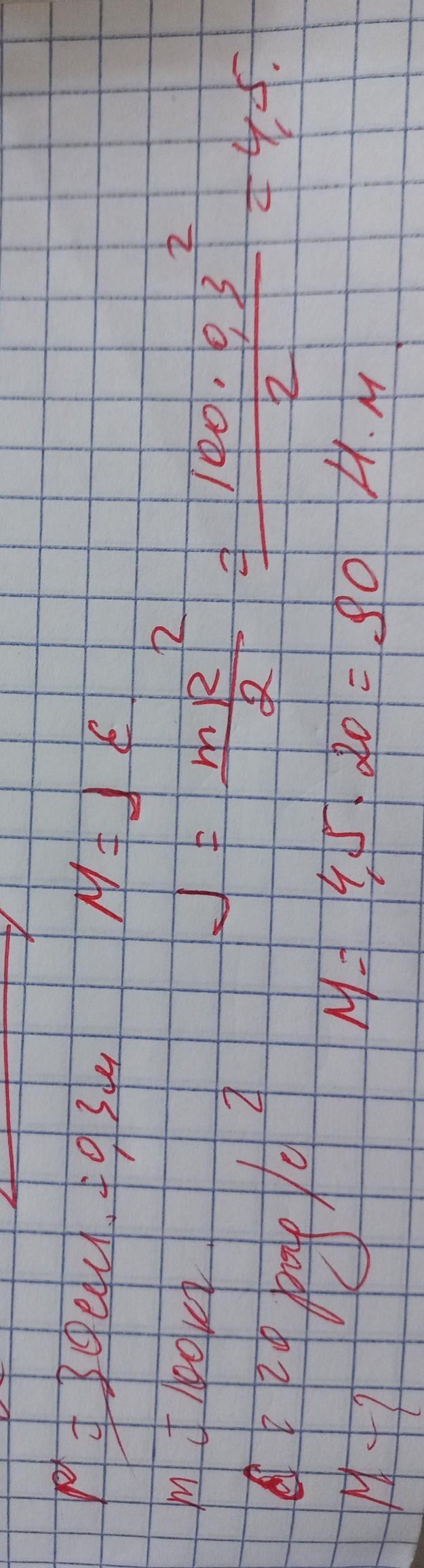 Маховик в виде диска радиусом 30 см и массой 100 кг вращается с ускорением 20 рад/с2 .Результирующий момент сил, действующий на колесо, равен…: