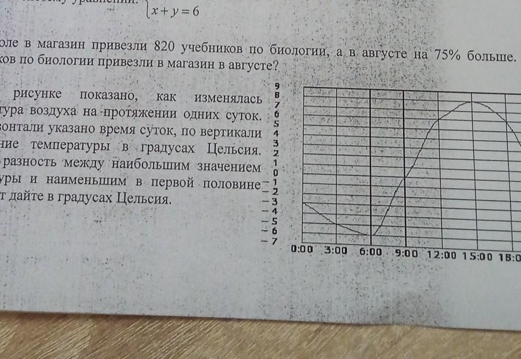 9. В 12 дня температура была 6 градусов, минимальная температура была зафиксирована в 6 утра -6градусов, Разность температур составила 12 градусов (6- -6)