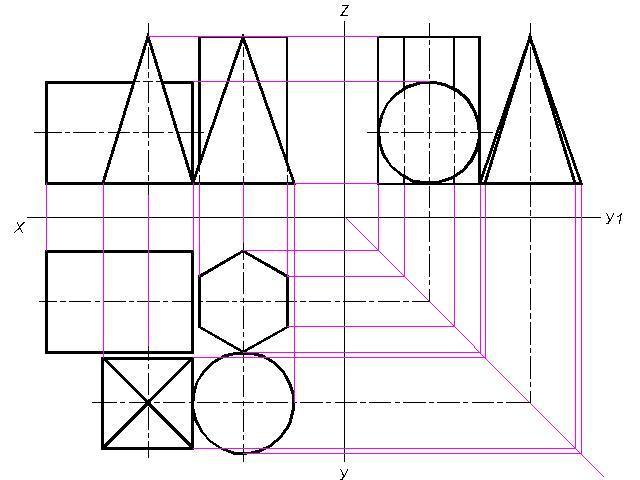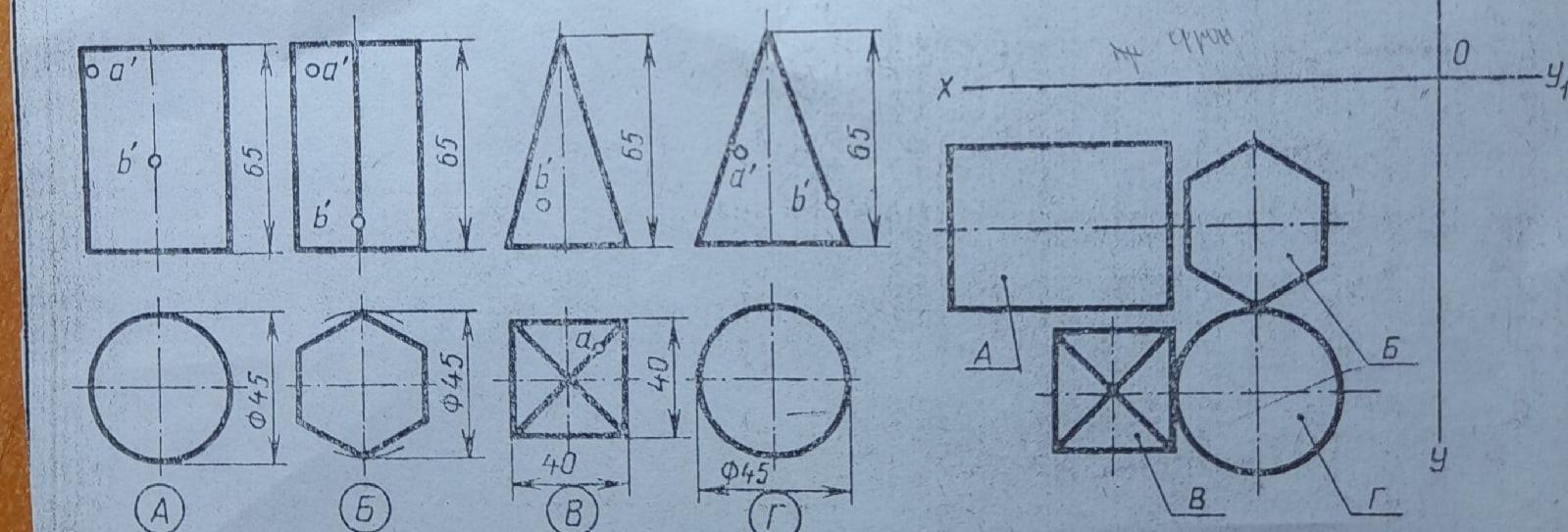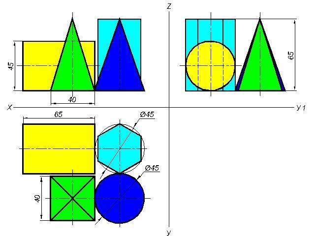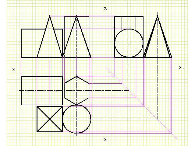 1. Перечертить заданные проекции геометрических тел. Достроить недостающую проекцию этих тел.