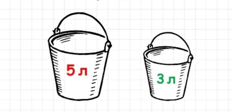 3. Снова наполнить большое ведро водой и перелить из него часть в маленькое, наполнив маленькое полностью.
