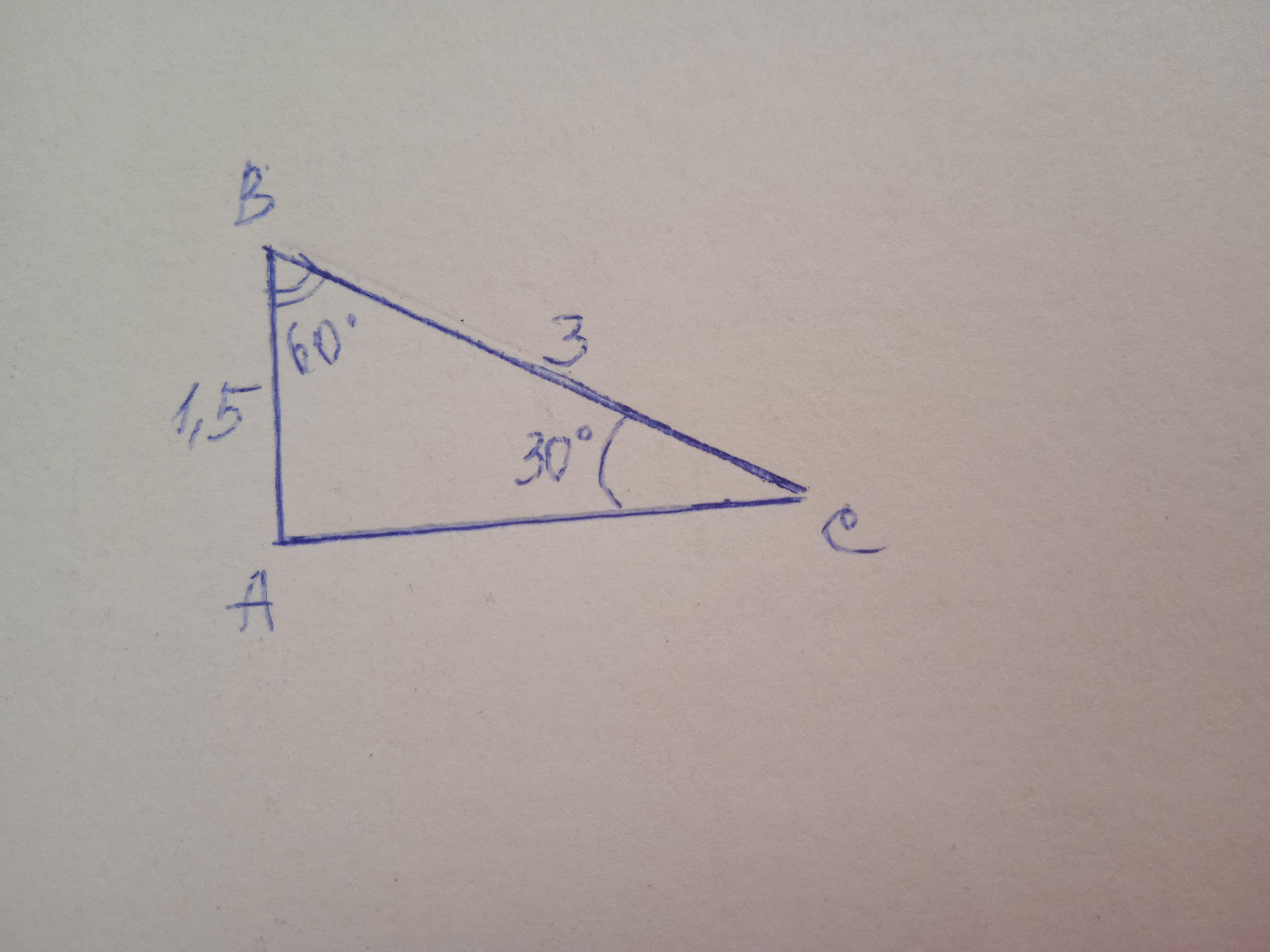 ∠С=30°, значит будет значение ∠В=90-30=60°